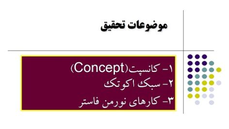 1- کانسپت(Concept)2- سبک اکوتک3- کارهای نورمن فاستر