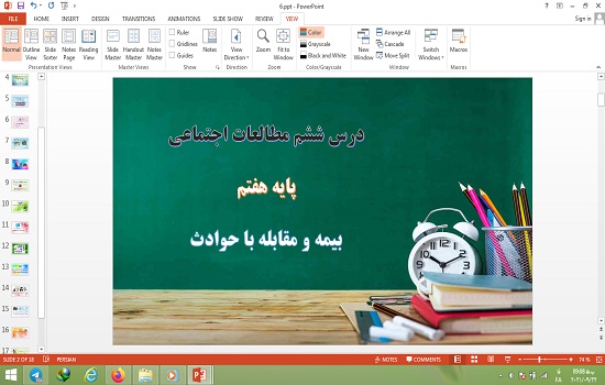 عنوان پاورپوینت درسی: دانلود پاورپوینت بیمه و مقابله با حوادث درس ششم مطالعات اجتماعی پایه هفتم